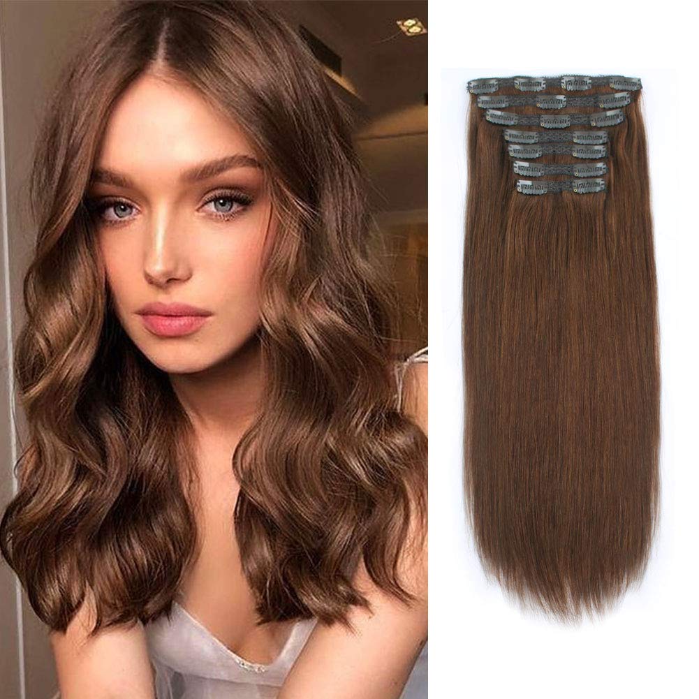 Lovrio 9a Grade Clip In Human Hair Extensions Color Chocolate Brown Big Thick Double Weft Make Full Head Remy Straight Hair Clip Ins 16 Inch 120g 7 Pieces 18 Clips